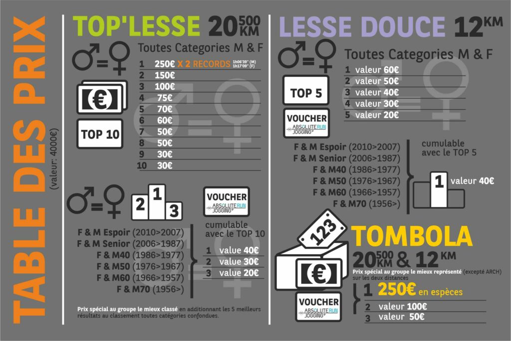 Les prix sont cumulables et seront uniquement remis aux coureurs